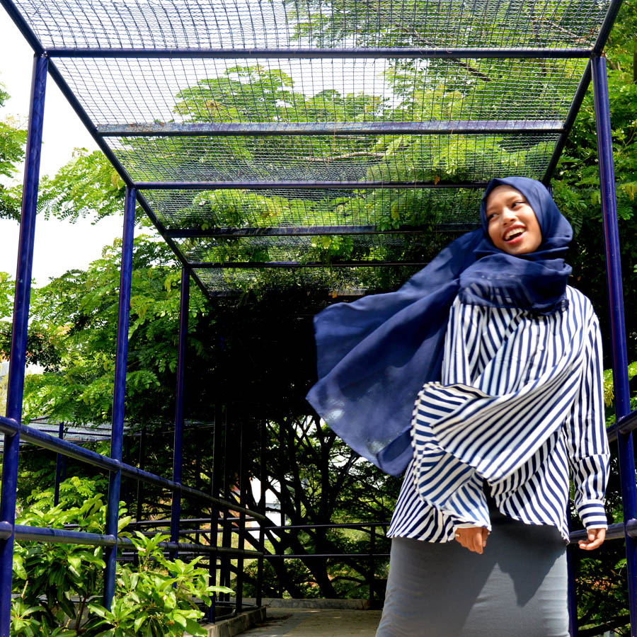 Sebenarnya, ada peraturan di kampus saya tentang pakaian yang boleh dikenakan mahasiswanya, yaitu pakaian berkerah, yang paling banyak hasil akhirnya adalah kemeja atau polo shirt. Tapi ya, karena memang anak-anak jurusan saya suka bandel, beberapa dari kita sering nggak nurutin peraturan ini dan mengenakan baju yang nggak berkerah. Bahkan karena saya berhijab, kayaknya saya lebih sering pakai baju yang nggak berkerah, kayak main deh pokoknya.